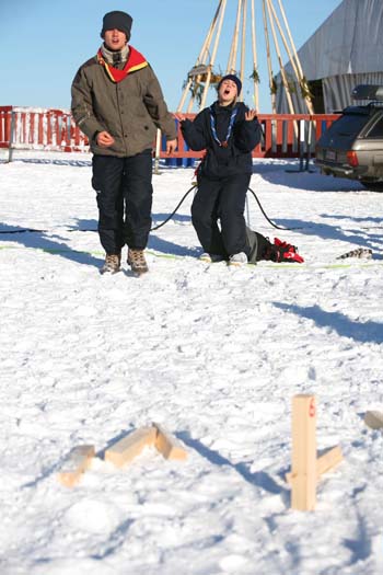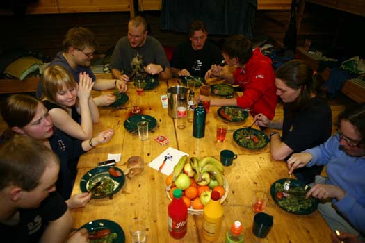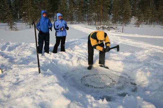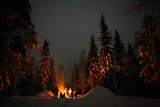 The Arctic climate was a real challenge (at least for the Dutch ;), skiing to get from A to B, making snow caves, digging holes in the ice and even making a "freezing" bath-tub! The activities allowed both groups to mingle and cooperate in a for scouts natural way. The temperatures were moderate for the Finnish winter, averaging around -15C. Snow was plentyfull and when the sun started shining it was really nice!
