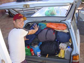 Nou het is al weer ff geleden, maar ik ben op het moment in broome en dus is het tijd om mijn dagboek weer eens up-te-daten. De nacht voordat Ik, Marjolein en Coen op weg gingen zijn we een andere reisgenoot tegengekomen. Lewis is een kerel uit engeland, die in het begin geintereseerd was in het mee reizen naar Exmouth, voor het duiken. We hebben hem uitgenodigd op de avond voor ons gesprek en hij is de hele reis naar Broome mee gegaan. De eerste dag hebben we vooral veel tijd besteedt aan het inpakken van de auto. Van 2 naar 4 man in de auto is nogal een verschilletje en dus was praktisch inpakken nummer 1 prioriteit! Zoals je kan zien op de foto past het allemaal maar net!