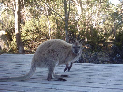 Deze brutale wallibi kwam gewoon het terras op springen waar we zatten te relaxen. Hij was erg tam, want je kon hem ook aaien en dat vondt hij niet erg.