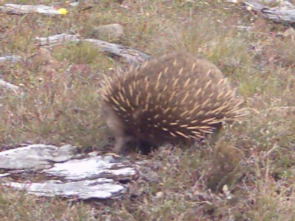 Dit is een echidna. Een australisch stekelvarken zegmaar. De punten die eraan zitten zijn eigenlijk aan elkaar geplakte haren. Het is ook niet echt heel hard. Echt een grappig beestje!
