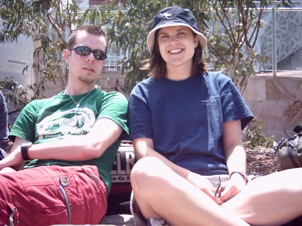Hier zit ik met Andrea op Federation Square, tennis te kijken. Het was erg warm daar en ik ben toen al verbrand op mij voorhoofd en neus....beetje jammer! ik had gehoord dat het bij jullie sneeuwt???